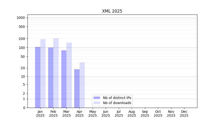 Number of downloads for annotation package XML, year by year, from 2025 back to 2014 (years with no downloads are omitted):