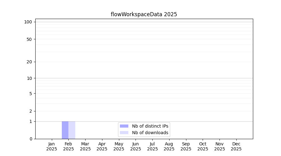Number of downloads for annotation package flowWorkspaceData, year by year, from 2025 back to 2014 (years with no downloads are omitted):