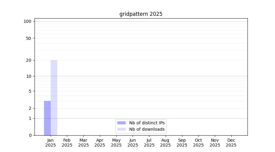 Number of downloads for annotation package gridpattern, year by year, from 2025 back to 2014 (years with no downloads are omitted):