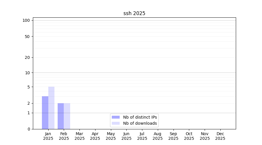 Number of downloads for annotation package ssh, year by year, from 2025 back to 2014 (years with no downloads are omitted):
