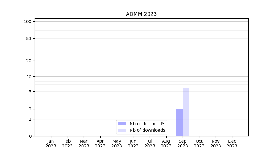 Number of downloads for experiment package ADMM, year by year, from 2025 back to 2014 (years with no downloads are omitted):