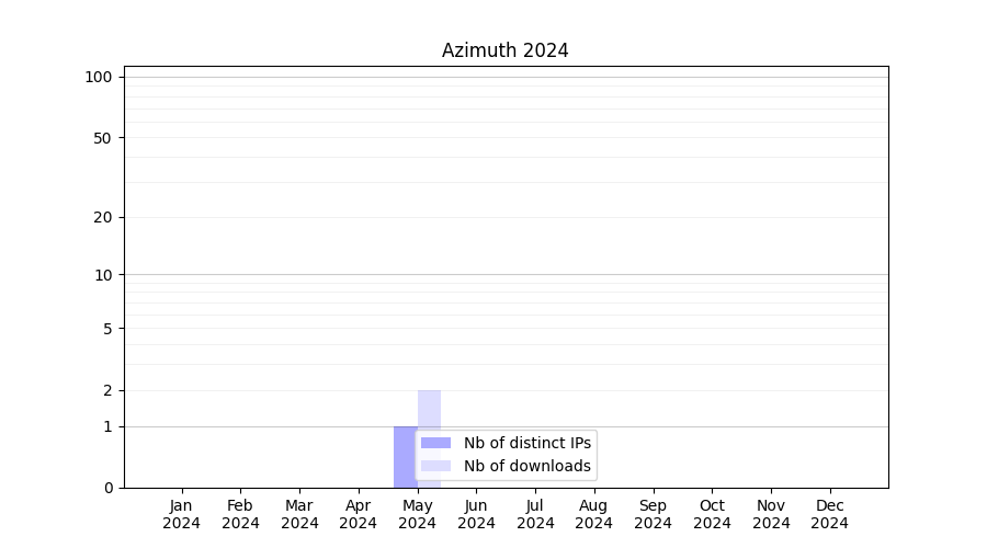 Number of downloads for experiment package Azimuth, year by year, from 2025 back to 2014 (years with no downloads are omitted):