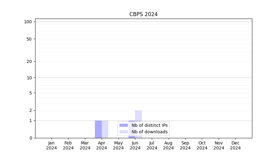 Number of downloads for experiment package CBPS, year by year, from 2025 back to 2014 (years with no downloads are omitted):