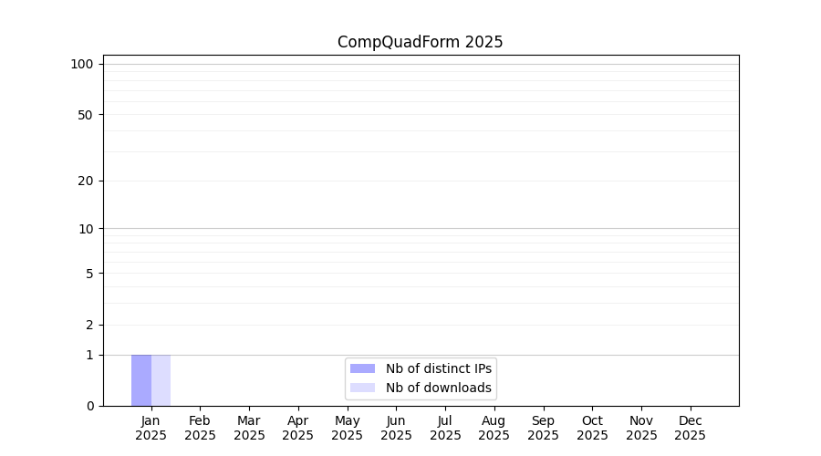 Number of downloads for experiment package CompQuadForm, year by year, from 2025 back to 2014 (years with no downloads are omitted):