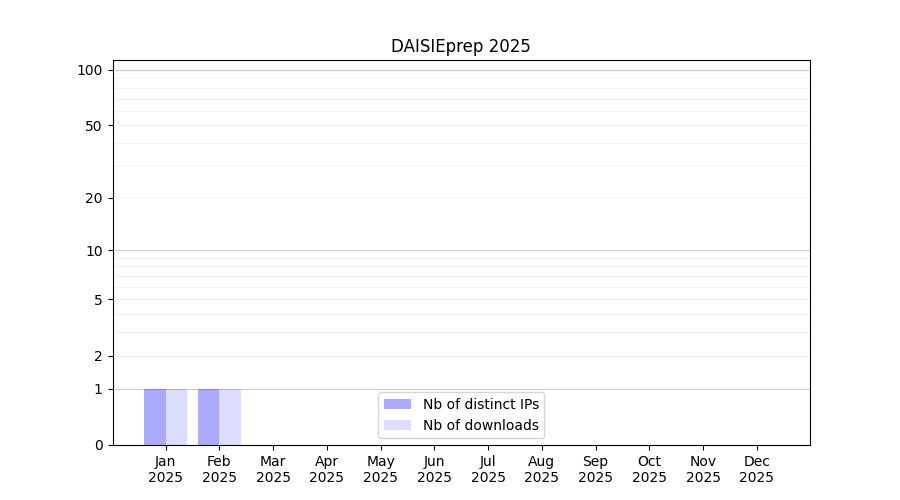 Number of downloads for experiment package DAISIEprep, year by year, from 2025 back to 2014 (years with no downloads are omitted):
