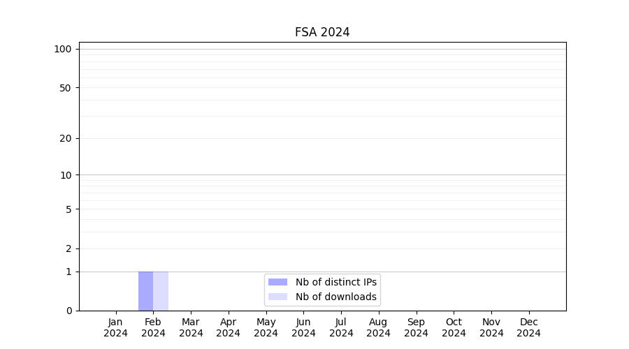 Number of downloads for experiment package FSA, year by year, from 2025 back to 2014 (years with no downloads are omitted):