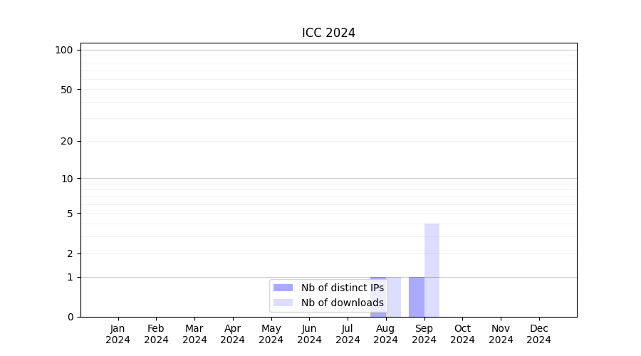 Number of downloads for experiment package ICC, year by year, from 2025 back to 2014 (years with no downloads are omitted):