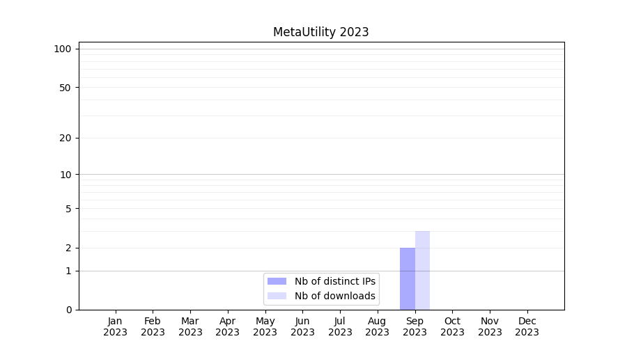 Number of downloads for experiment package MetaUtility, year by year, from 2025 back to 2014 (years with no downloads are omitted):