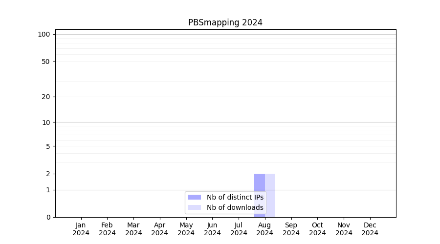 Number of downloads for experiment package PBSmapping, year by year, from 2025 back to 2014 (years with no downloads are omitted):