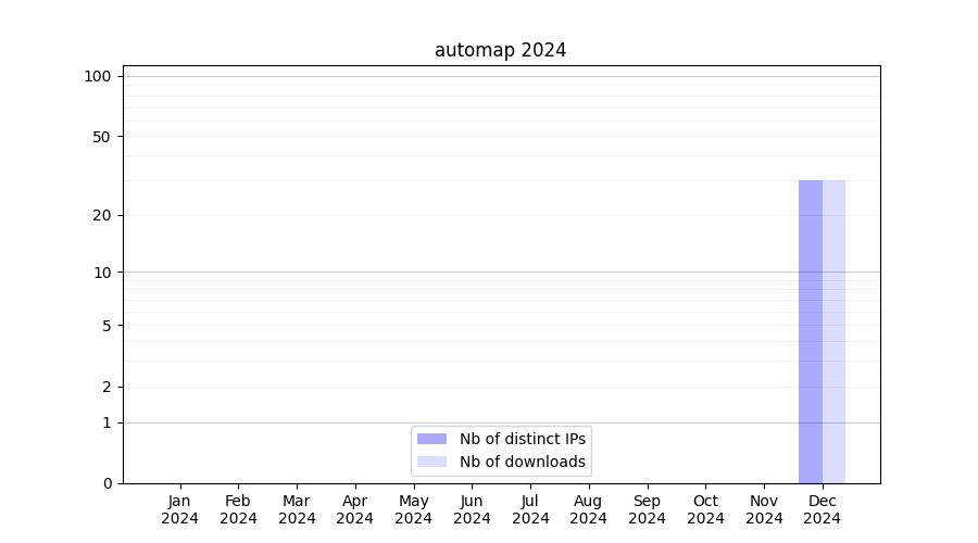 Number of downloads for experiment package automap, year by year, from 2025 back to 2014 (years with no downloads are omitted):