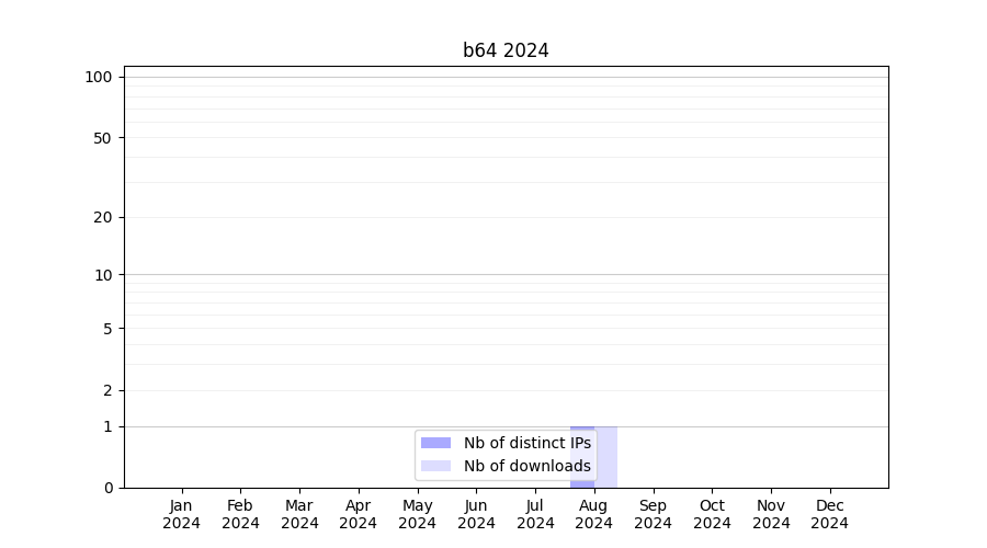 Number of downloads for experiment package b64, year by year, from 2025 back to 2014 (years with no downloads are omitted):