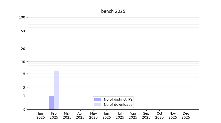 Number of downloads for experiment package bench, year by year, from 2025 back to 2014 (years with no downloads are omitted):