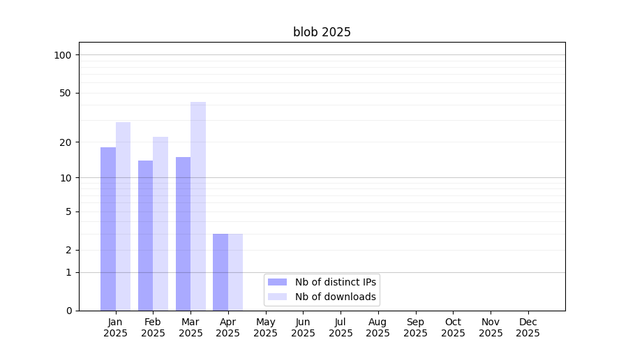 Number of downloads for experiment package blob, year by year, from 2025 back to 2014 (years with no downloads are omitted):