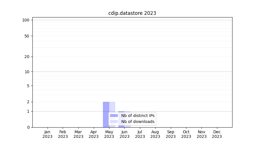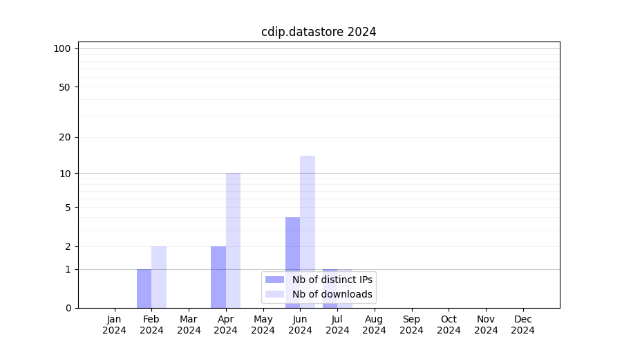 Number of downloads for experiment package cdip.datastore, year by year, from 2025 back to 2014 (years with no downloads are omitted):