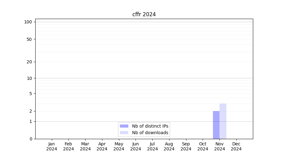 Number of downloads for experiment package cffr, year by year, from 2025 back to 2014 (years with no downloads are omitted):