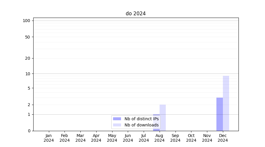 Number of downloads for experiment package do, year by year, from 2025 back to 2014 (years with no downloads are omitted):