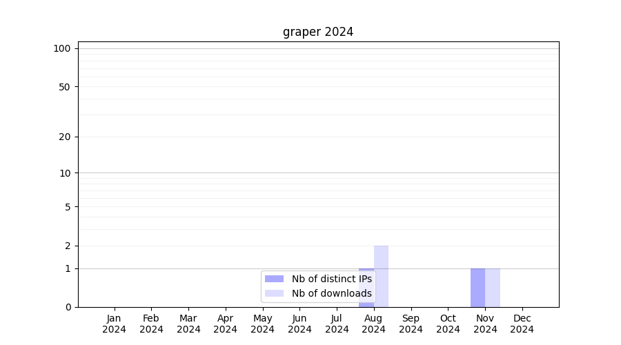 Number of downloads for experiment package graper, year by year, from 2025 back to 2014 (years with no downloads are omitted):