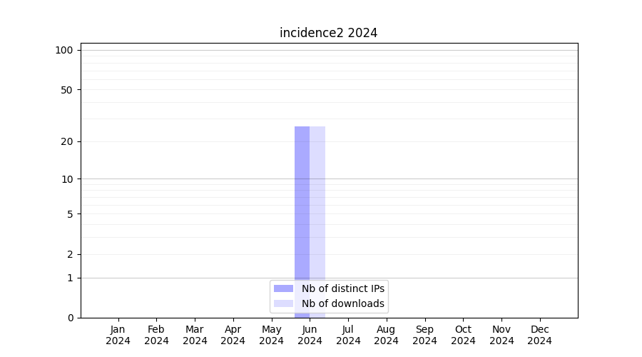 Number of downloads for experiment package incidence2, year by year, from 2025 back to 2014 (years with no downloads are omitted):