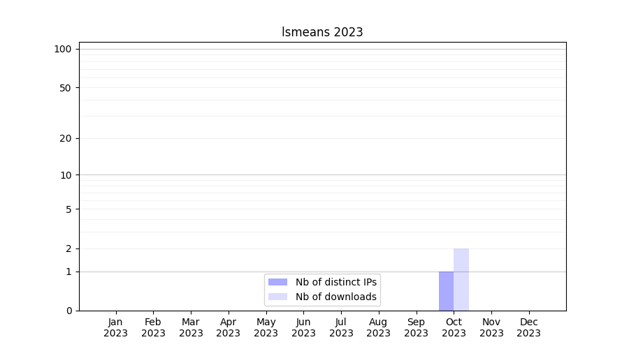 Number of downloads for experiment package lsmeans, year by year, from 2025 back to 2014 (years with no downloads are omitted):