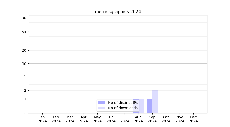 Number of downloads for experiment package metricsgraphics, year by year, from 2025 back to 2014 (years with no downloads are omitted):