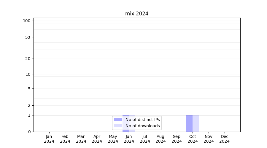 Number of downloads for experiment package mix, year by year, from 2025 back to 2014 (years with no downloads are omitted):
