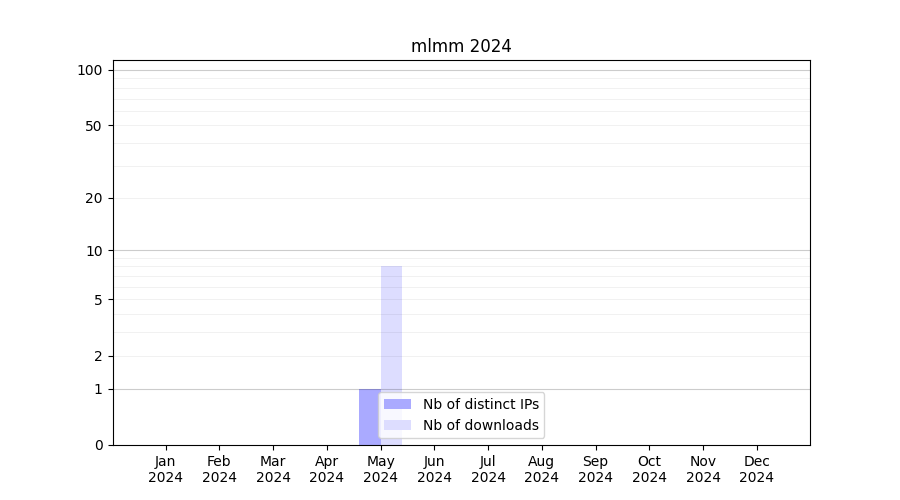 Number of downloads for experiment package mlmm, year by year, from 2025 back to 2014 (years with no downloads are omitted):