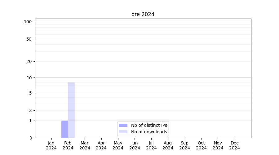 Number of downloads for experiment package ore, year by year, from 2025 back to 2014 (years with no downloads are omitted):