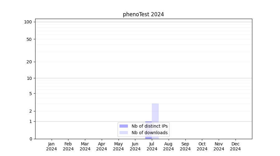 Number of downloads for experiment package phenoTest, year by year, from 2025 back to 2014 (years with no downloads are omitted):