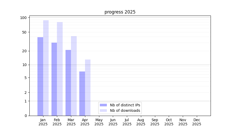 Number of downloads for experiment package progress, year by year, from 2025 back to 2014 (years with no downloads are omitted):