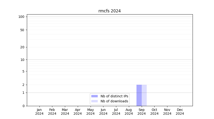 Number of downloads for experiment package rmcfs, year by year, from 2025 back to 2014 (years with no downloads are omitted):