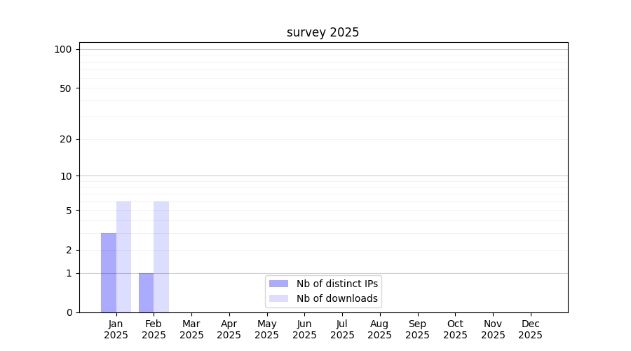 Number of downloads for experiment package survey, year by year, from 2025 back to 2014 (years with no downloads are omitted):