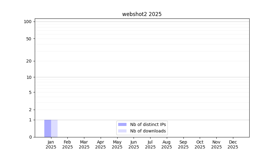 Number of downloads for experiment package webshot2, year by year, from 2025 back to 2014 (years with no downloads are omitted):